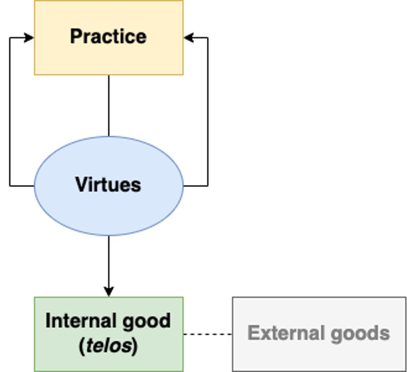 Alasdair MacIntyre, in After Virtue, described a basic framework that we can use to understand medicine. I’ve sketched it out here: